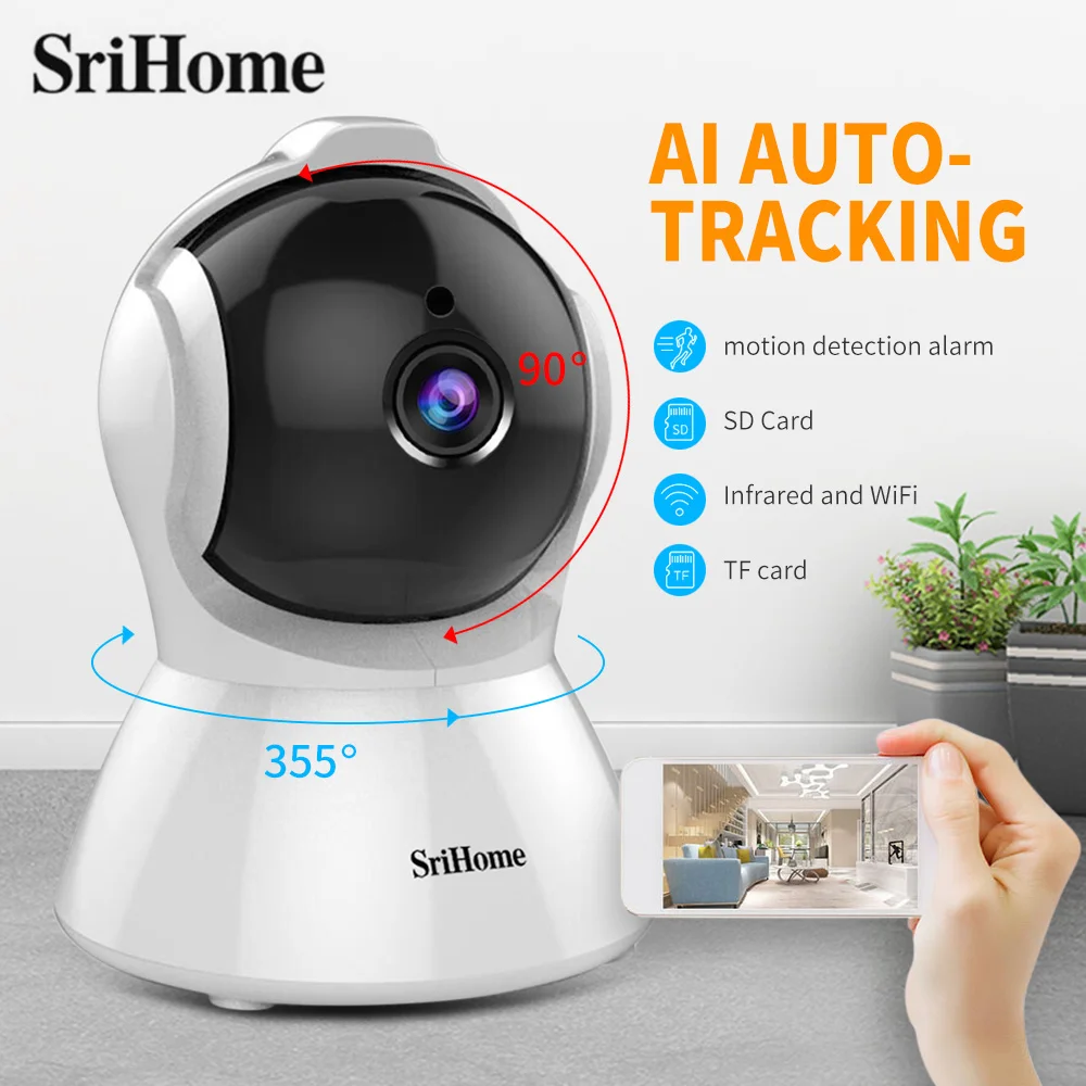 HOT Sale SriHome SH025 1080P AI Auto-tracking Wireless Indoor IP Camera IR Night Vision Smart Motion Trackin