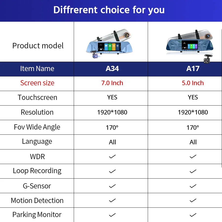 BEST E-ACE Car Dvr 7.0 Inch Rearview Mirror FHD 1080P DashCam Dual Lens Video Recorder Night Vision Auto